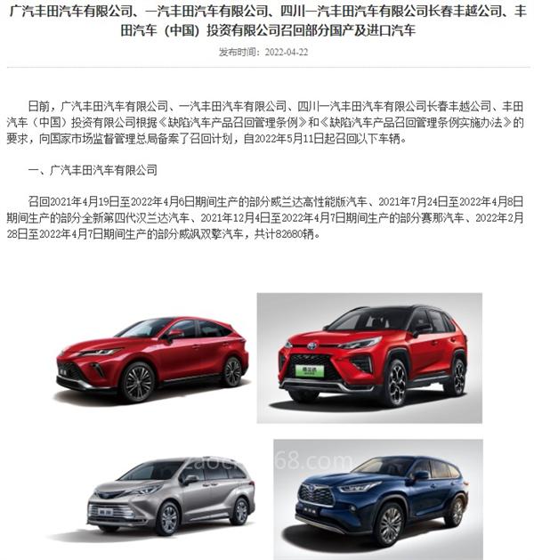 另外一起值得关注的召回来自于丰田系。4月,广汽丰田汽车有限公司、一汽丰田汽车有限公司、四川一汽丰田汽车有限公司长春丰越公司、丰田汽车(中国)投资有限公司联合召回了共计138899辆丰田和雷克萨斯汽车,也是当月涉及数量最大的单起召回案。