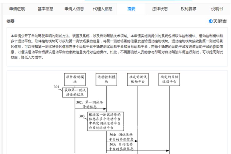 天眼查App显示,5月3日,华为技术有限公司“自动驾驶车辆的测试方法、装置及系统”专利公布。