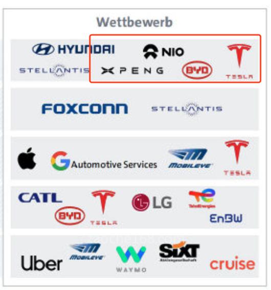 十分有趣的是,就在上月,网络中流出了一张大众集团CEO迪斯发表的内部PPT截图,首次对外曝光了其在品牌、整车、技术平台、软件、电池等领域的主要竞争对手。