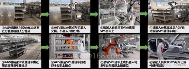 1)智能物流AGV:总装车间大件共采用38台潜入式AGV,实现全流程智能配线。
