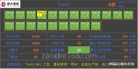 MES系统通过运用RFID和线体上的编码器结合实现整车的实时跟踪定位,将车辆定位信息传送到车间线体的ANDON显示屏上,可以及时了解车间的在制品情况,并通过分析原因不断减少在制品实现精益生产,能有效的制定出合理的总装生产计划以及各分装线、焊装、涂装的对应节拍和解决焊装车型生产批次以及涂装颜色生产批次的问题。能实现了解车间停线情况,提高了维修可达性。如现场异常需要跨车间处理,现场触发异常Andon,系统会自动推送请求信息到对应部门的Andon大屏。