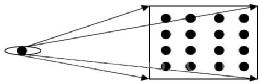 在建模的过程中首先对雷达电磁波束进行几何表征。利用光学方法来处理电磁波,得到雷达视锥模型。之后完成视锥可见判断、视锥裁剪判断、遮挡判断。最终根据其在雷达坐标系下的坐标,计算特征点集与雷达的相对距离和方位角,输出雷达范围内目标物体特征点集的坐标、距离与方位角,返回目标物体的ID。