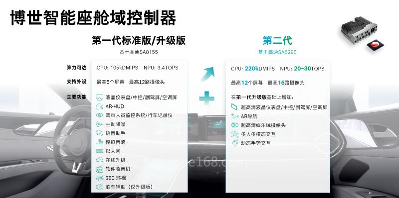 据悉,博世第二代智能座舱域控制器,搭载最新的高通SA8295芯片平台,相比基于高通SA8155芯片平台的第一代产品,算力更加强大,能够容纳更多数量的外接设备,实现更加丰富的功能,并且支持更高的功能安全等级,使智能座舱与智能驾驶的跨域融合成为可能。
