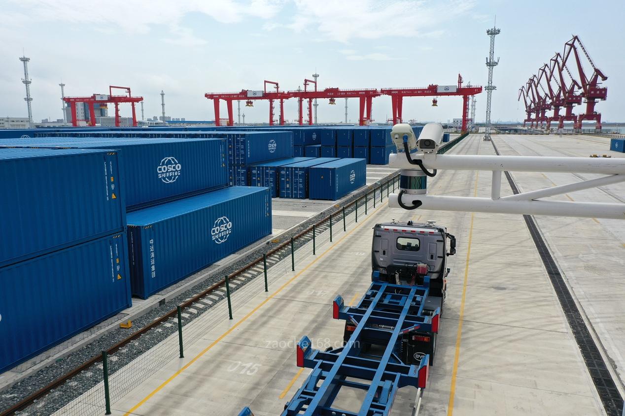 第一代自动化码头采用的无人引导车(AGV),主要依靠地面无源磁钉布阵完成定位导航,投入成本高昂且施工周期长。飞步选用集装箱卡车作为运输车型,搭载全栈自主研发的L4级无人驾驶系统,通过融合北斗定位系统、激光雷达、摄像头及毫米波雷达等多种传感器,可自主辨识复杂交通环境、障碍物和交通标志标线,无须依靠大规模基础设施建设,便能够完成道路行驶、精确停车、集装箱装卸和障碍物绕行避让等动作,支持近200种工况。
