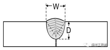 当焊缝深度比宽度大时,会使凝固颗粒增长垂直于焊接中心,容易产生热裂纹,特别是高熔深的埋弧焊和药芯焊丝气保焊用于厚板窄间隙焊接时更容易发生。建议焊道宽深比(焊缝宽度/焊缝深度)在1~1.4之间有利于提高抗裂性。