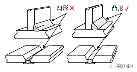 此外,凹形焊缝比凸形焊缝更容易产生裂纹,而高电压、焊接速度过快是凹形焊缝的主要成因,应尽量避免。