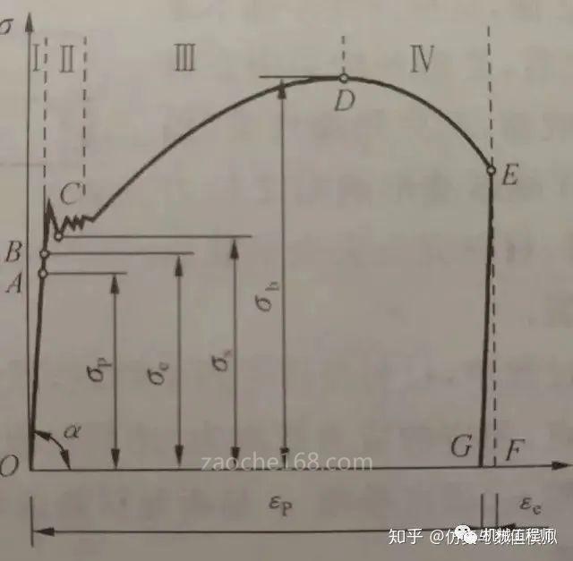 通过对上述关于强度和刚度的理论理解,相对于刚度,强度的定义针对的是外力作用下的破坏,而破坏类型的分类为塑形屈服及脆性断裂,由此联想到拉伸时的应力应变曲线。如图所示。