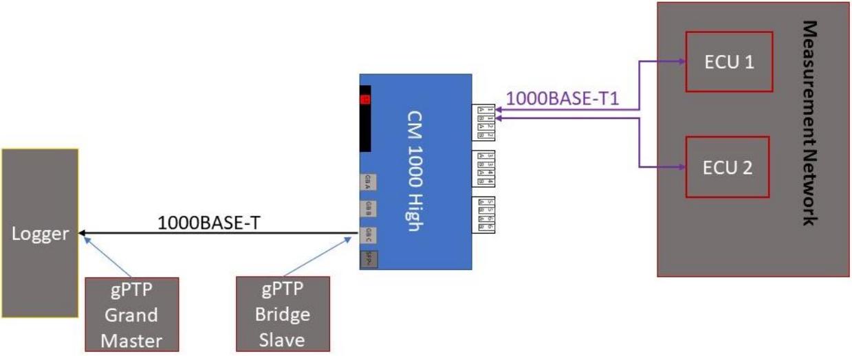 (1) 捕获1000BASE-T1线路流量并转发至记录设备。