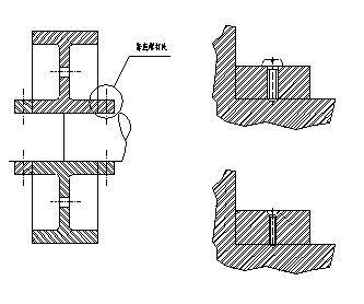 串联钢丝:用于螺钉数目不多且排列较密的联接,注意钢丝穿联方向,图中右图方向合理,防松效果,但安装费时。