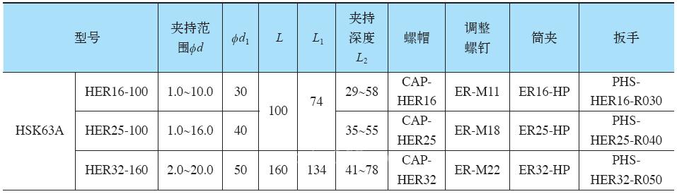 表1 普慧HER筒夹式高速刀柄规格尺寸(单位:mm)