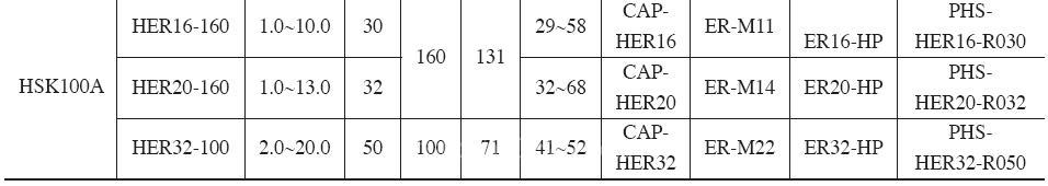 表2 肯纳金属的HSK40A型ER单角度弹簧夹头刀柄规格(单位:mm)