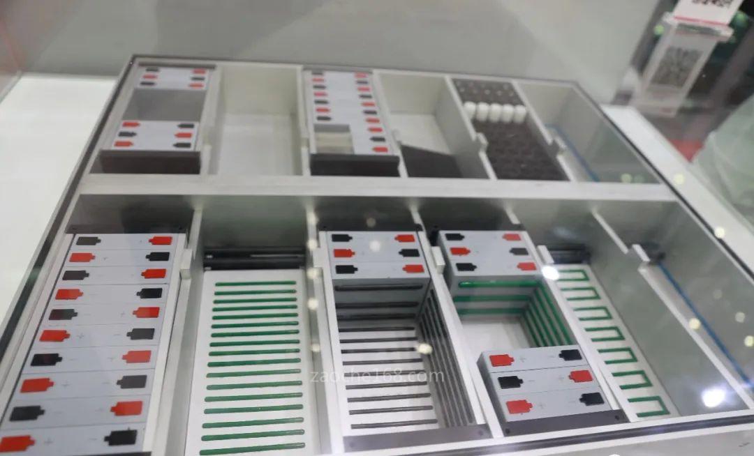 减少电池包模组等中间层级,将单体电芯尺寸做到最佳,提高箱体空间利用率。例如,比亚迪(BYD)提出的“刀片电池”电池包设计方案,如图所示,通过设计出一种扁平化大尺寸电芯,采用阵列排布方式布置于电池包箱体内部,单体电池就像“刀片”一样插入到电池包中,该设计能使电池包比能量提升50%左右,生产成本降低约30%。