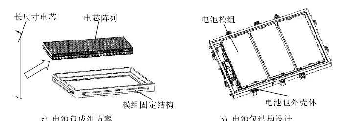 在电池包箱体有限空间内,一定数量电池单体通过特定机械连接和电连接组成电池模组,根据车用电池包的空间形状与承载特点,电池模组串并联排布组成动力电池系统,电池包中模组布置和结构形式差异较大。