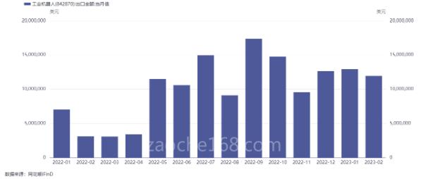 我国各类机器人产业基本面都在持续向好。自2022年5月以来,工业机器人单月出口金额均在千亿美元左右。根据高工机器人预测,2023年中国工业机器人市场增速在20%-25%。中信证券表示,预计工业机器人行业将在2023年二季度之后开启新一轮景气周期。
