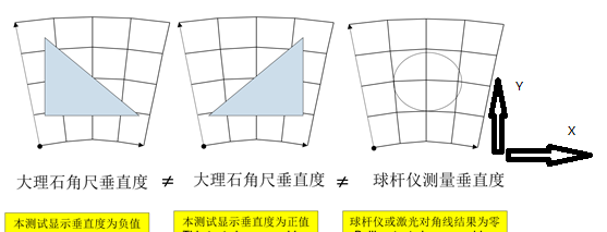 3)为何用角尺测定的垂直度与激光校准仪或球杆仪测得的结果不同?