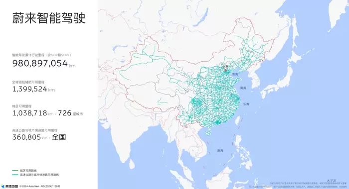 从首款车型交付至今,蔚来在智能驾驶研发和产品体验上持续进步。2020年9月,蔚来发布中国首个、全球第二个高速领航辅助NOP;2022年10月,蔚来发布增强领航辅助NOP+;2023年9月,蔚来宣布NOP+从高速进入城区,全域领航辅助NOP+实现高速、城区、泊车和换电场景的全覆盖;2024年4月,蔚来向第二代平台全量用户推送全域领航辅助NOP+城区路线,成为全国用户规模最大、验证道路里程最长的城区智驾功能推送。蔚来首创按路开通,汇路成网的模式,当前智能驾驶已覆盖全国726城,验证可用总里程近140万公里,其中城区智能驾驶可用里程超103万公里。基于强大的环境感知能力和算力冗余,蔚来第二代全系车型的智能驾驶能力正快速提升。