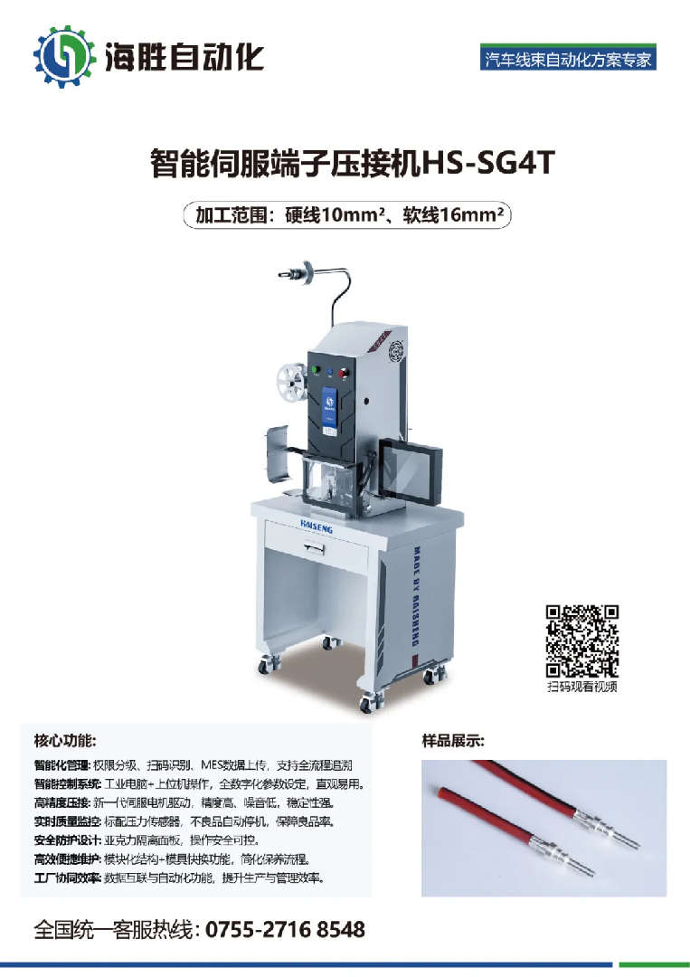 工业互联:MES数据上传+压力实时监控,硬线10mm²/软线16mm²压接精度达±0.01mm。